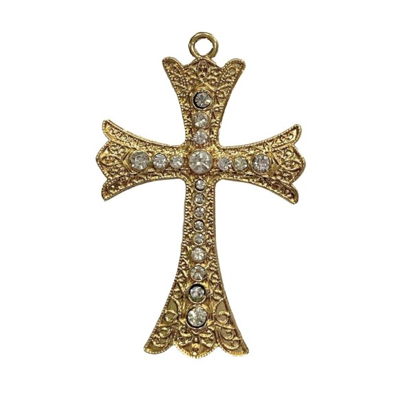 *Cruz Metal Dourada c/ Strass - 8,4x5,3cm.