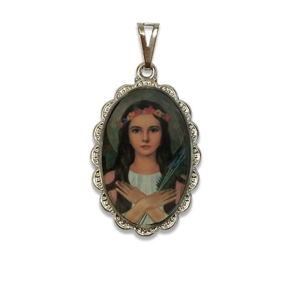 *Medalha Santa Filomena Rendada Níquel - 4,2x2,5cm.