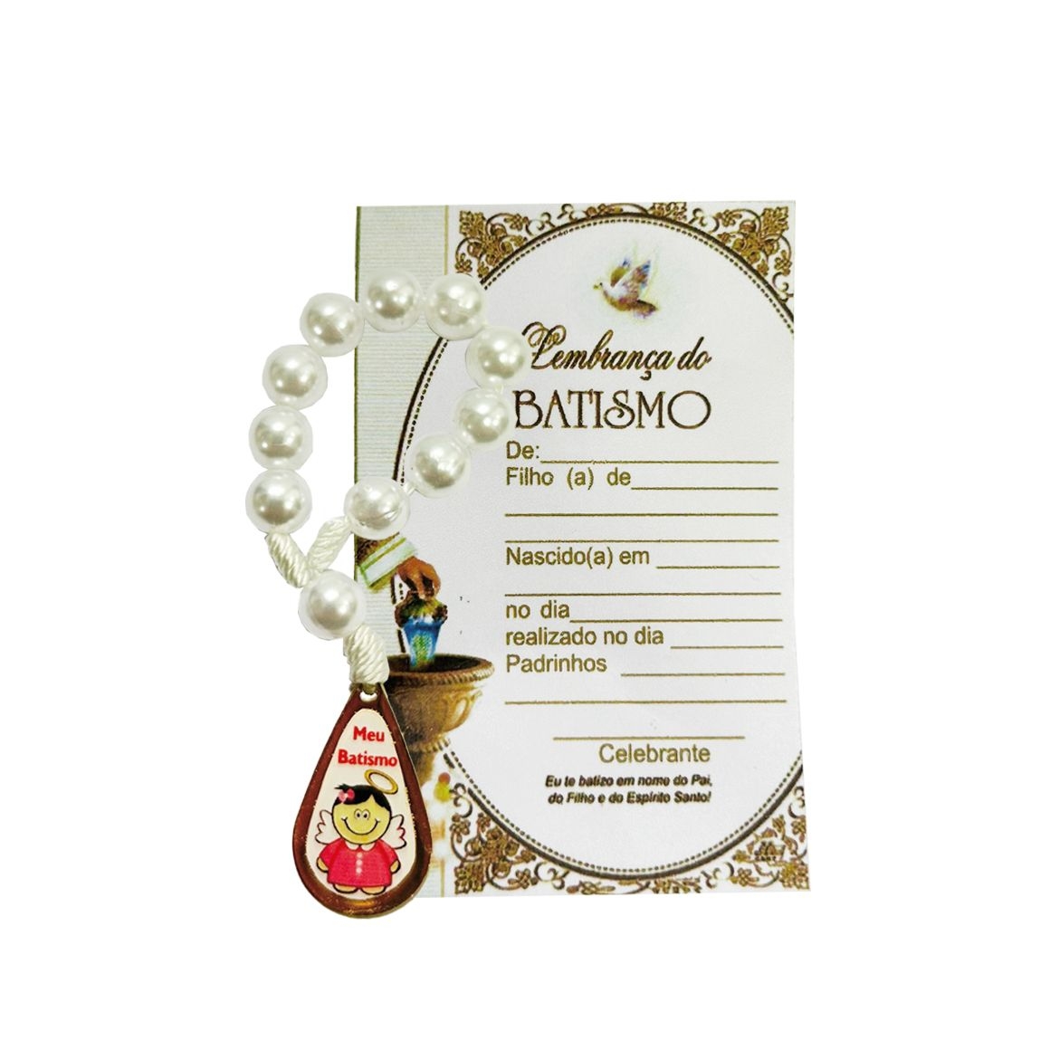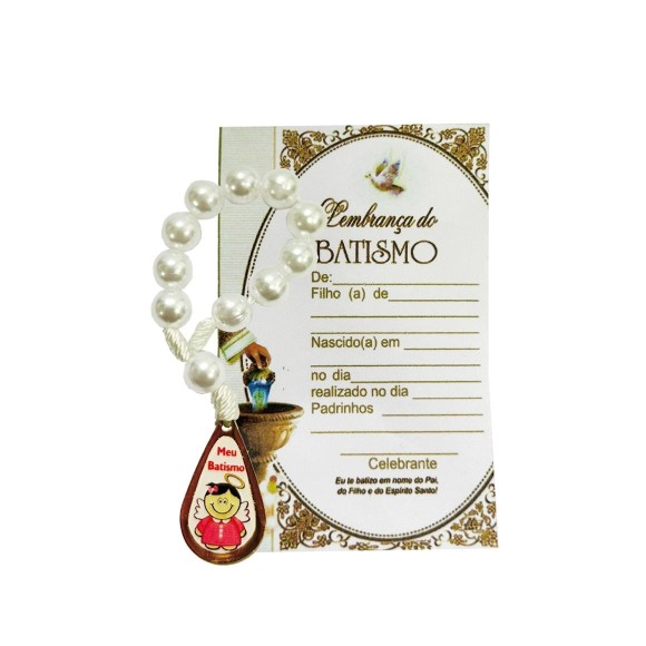 CT1465 - Cartão Lembrança Batismo Menina c/ Dezena - 8x2,5cm