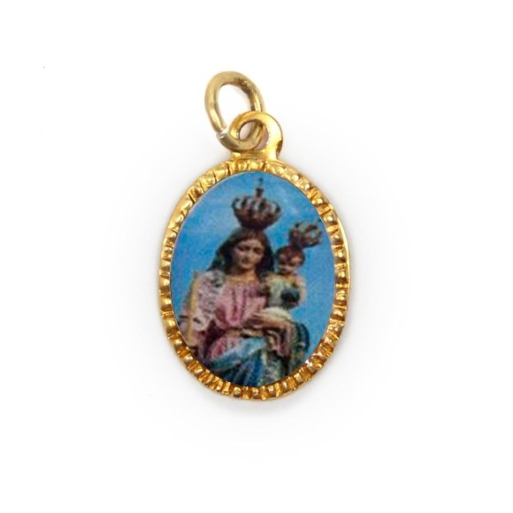 *Medalha de Alumínio Oval Dourada c/ 10un N. Sra. Da Luz - 2x1,3cm.