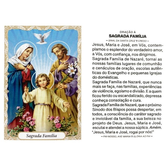*Oração Sagrada Família c/ 100un. - 9,5x6,5cm.