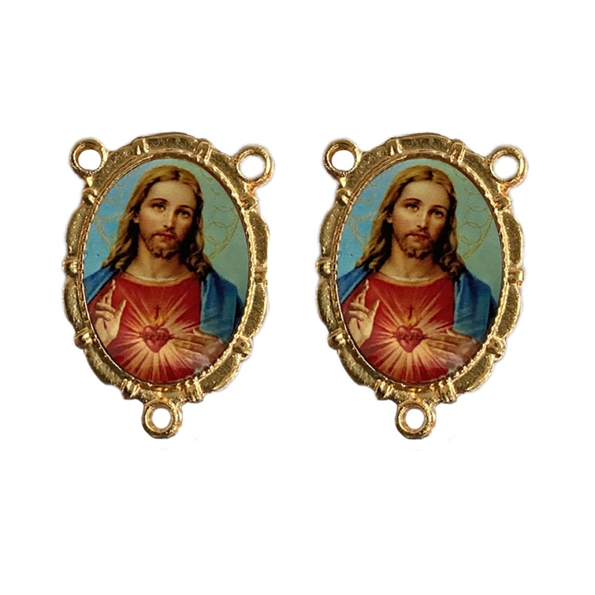 *Entremeio Sagrado Coração de Jesus Dourado Duplo Resinado 1un. - 3,2X2,2cm.