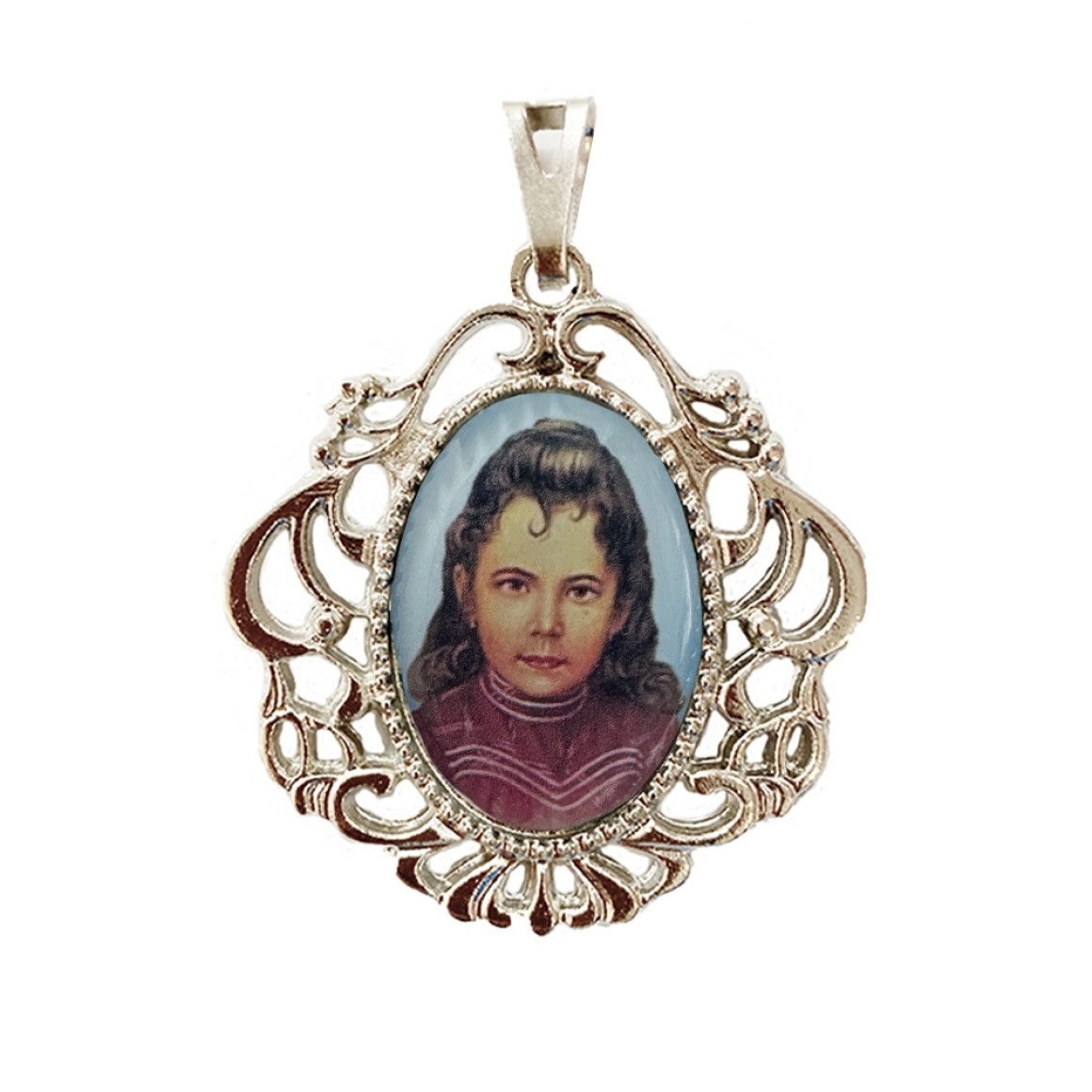MD129063 - Medalha Santa Izildinha Camafeu Níquel - 4,5x4cm