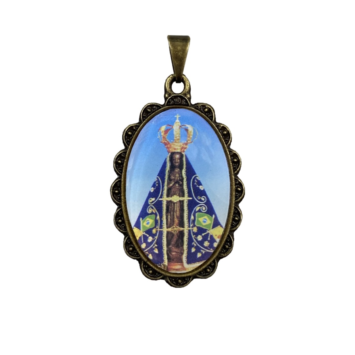 *Medalha N. Sra. Aparecida Rendada Ouro Velho - 4,2x2,5cm.