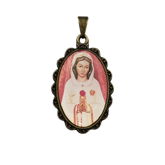 *Medalha N. Sra. Rosa Mística Rendada Ouro Velho - 4,2x2,5cm.