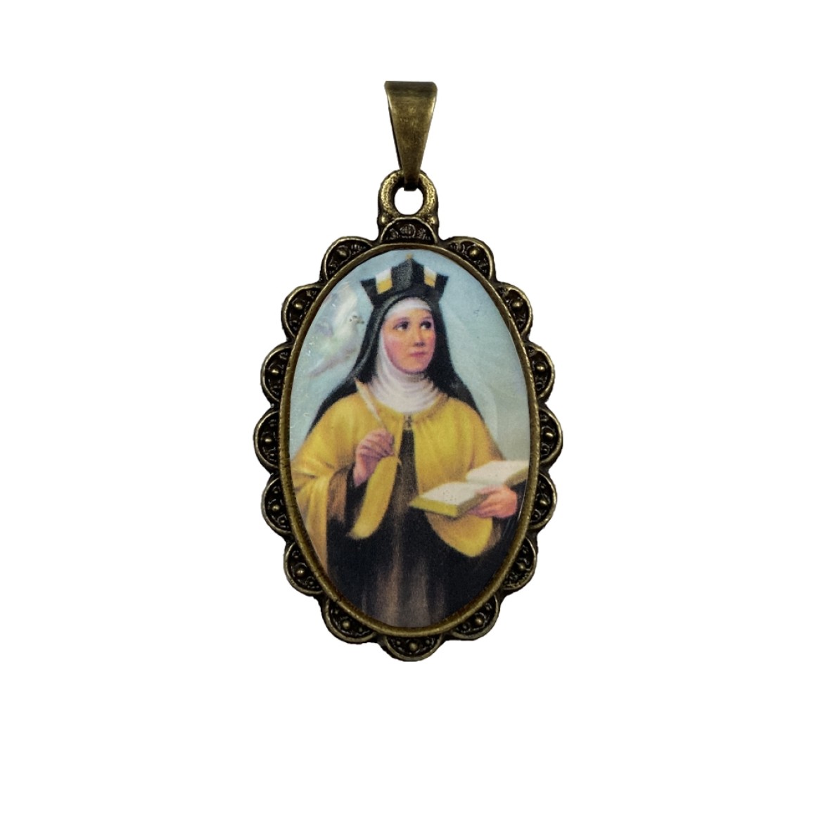 *Medalha Santa Teresa D'Ávila Rendada Ouro Velho - 4,2x2,5cm.
