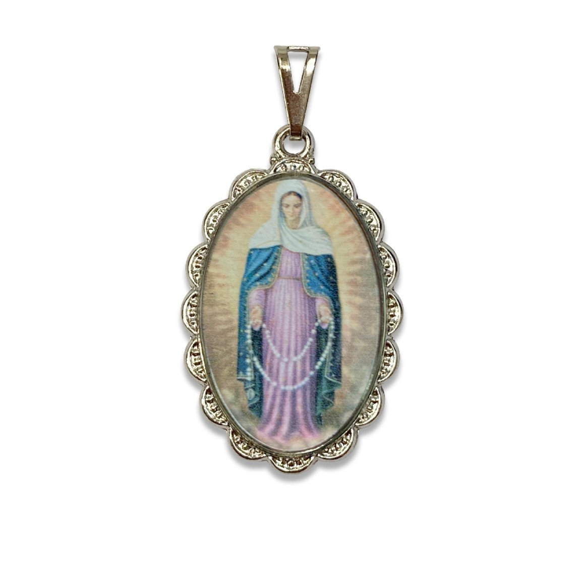 *Medalha N. Sra. das Lágrimas Rendada Níquel - 4,1x2,6cm.