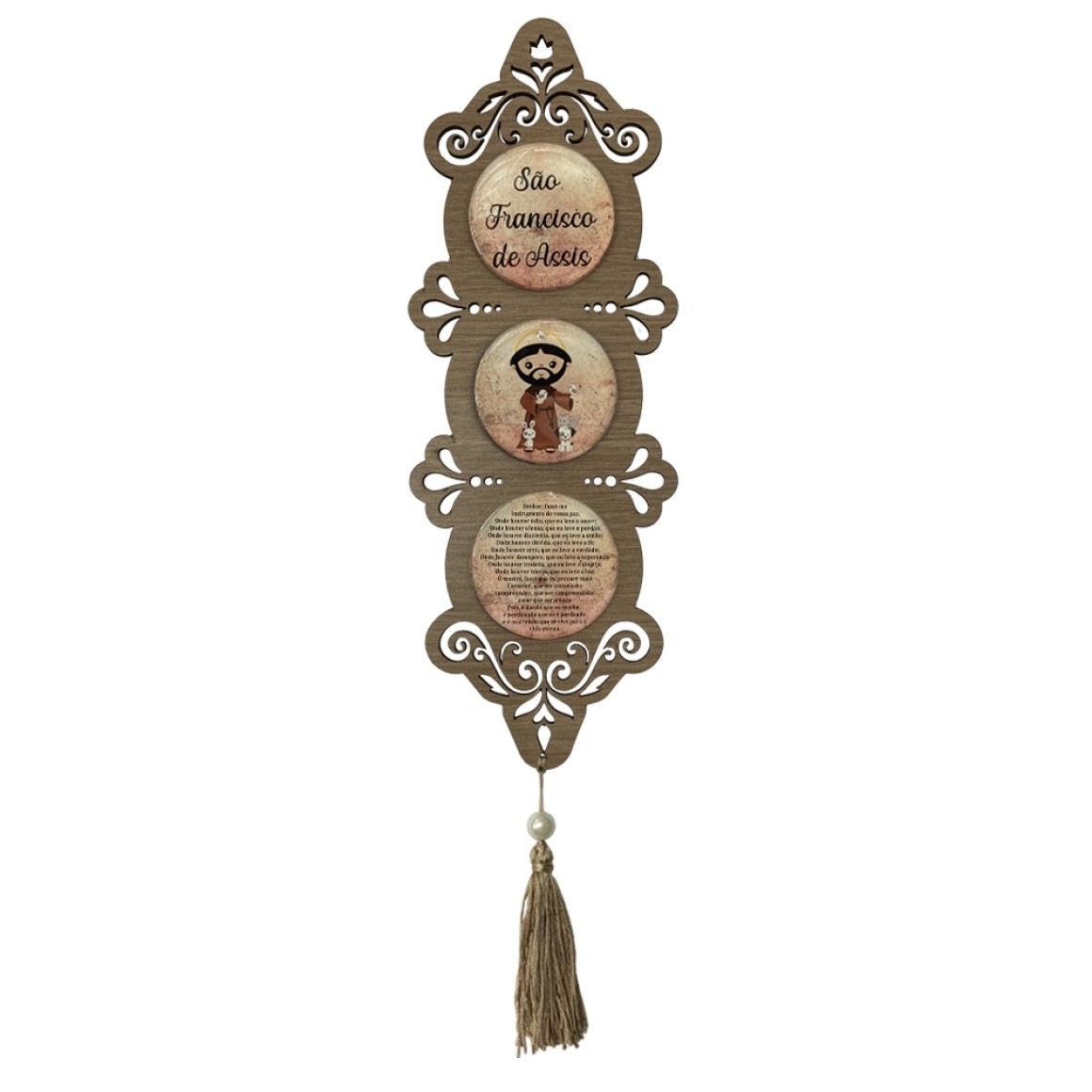 *Adorno São Francisco de Assis MDF Amadeirado Resinado - 40x10,5cm.