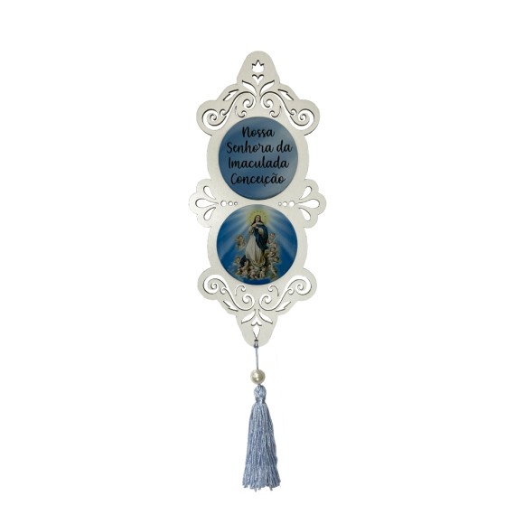 *Adorno N. Sra. Imaculada Conceição MDF Branco Resinado - 32x10,2cm.