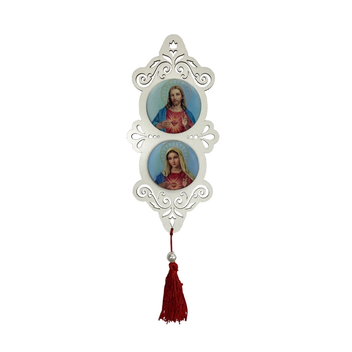 AO4102120 - Adorno Sagrado Coração de Jesus e Imaculado Coração de Maria MDF Branco Resinado - 32x10,2cm