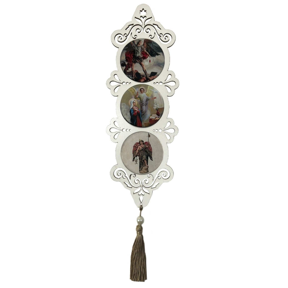 AO4102705 - Adorno Arcanjos MDF Branco Resinado - 40x10,5cm