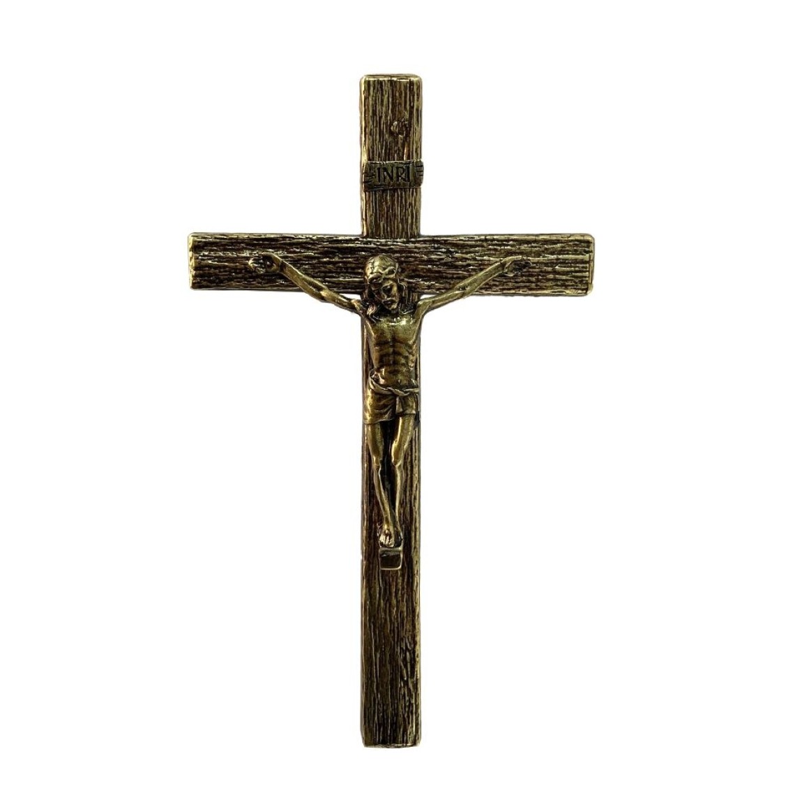 *Crucifixo Parede Metal Ouro Velho - 24,5x14cm.