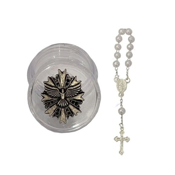 *Caixinha Divino Espírito Santo Níquel Envelhecido c/ Dezena - 3,8x1,7cm.