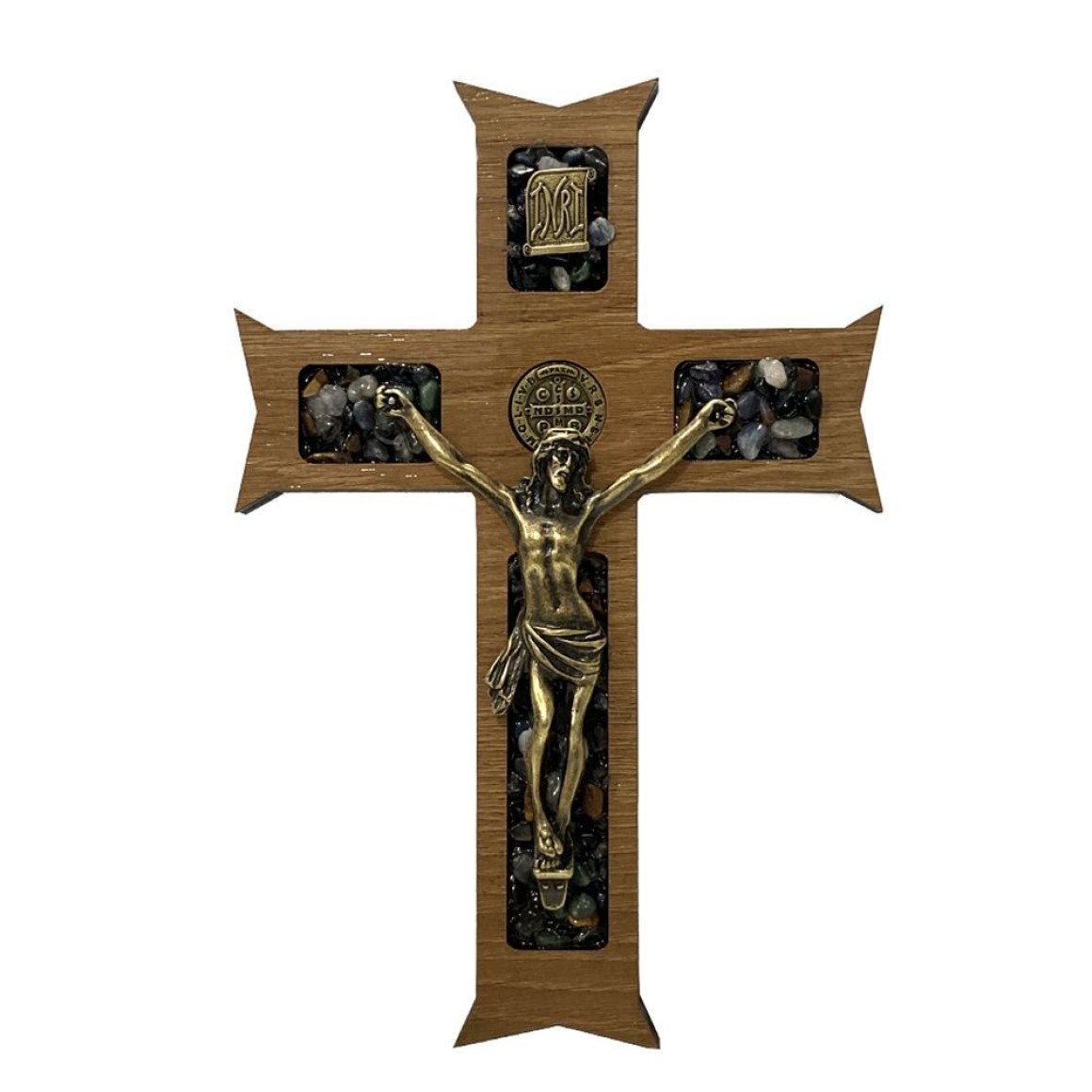 *Crucifixo de Parede São Bento Madeira - 27X18cm.