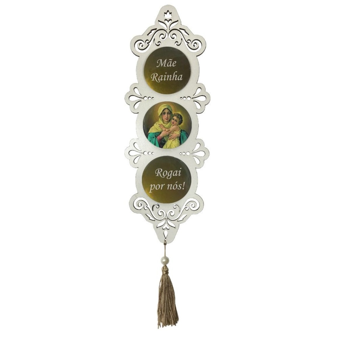 *Adorno Mãe Rainha MDF Branco  Resinado - 40x10,5cm.