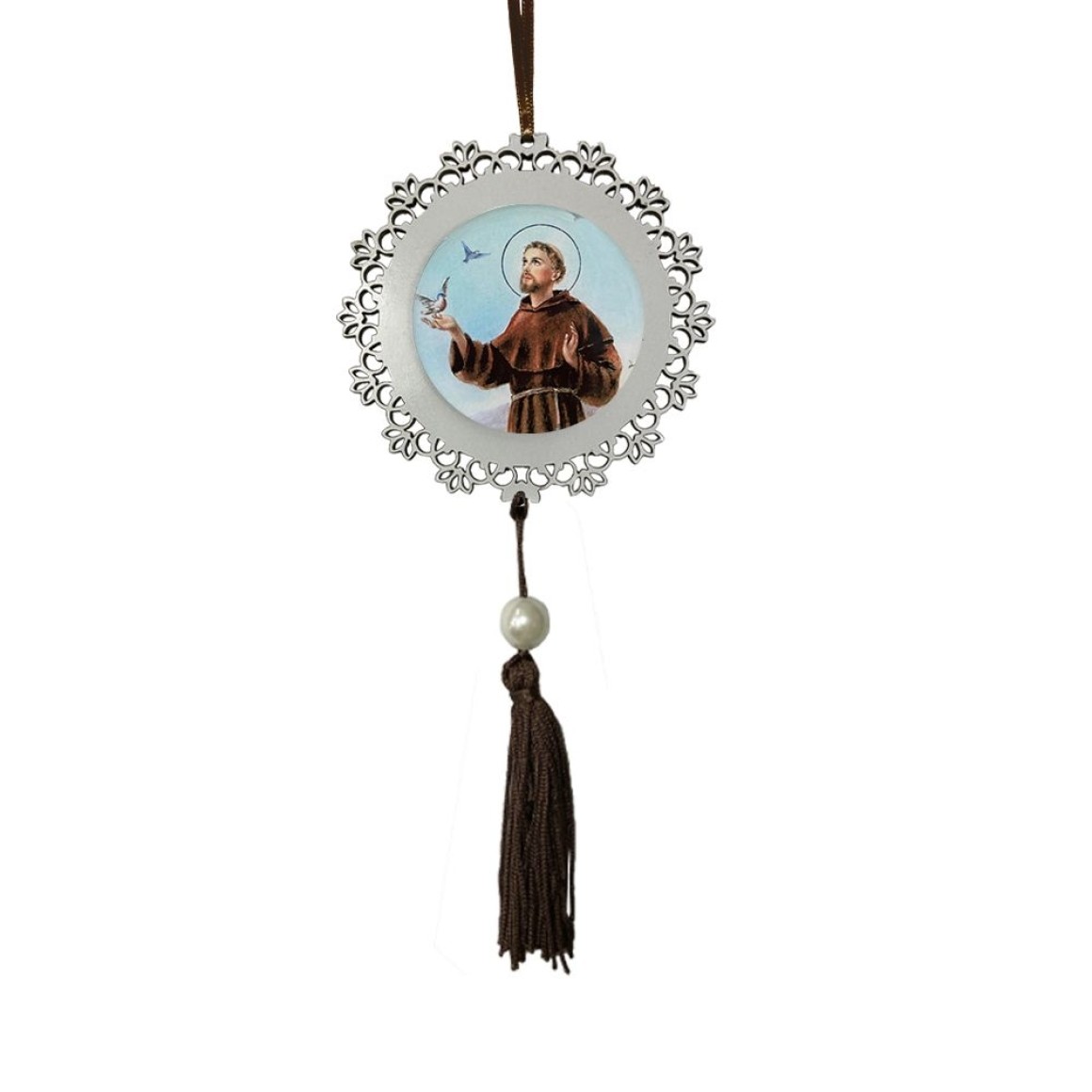 *Adorno São Francisco de Assis MDF Branco Resinado - 22x9,7cm.