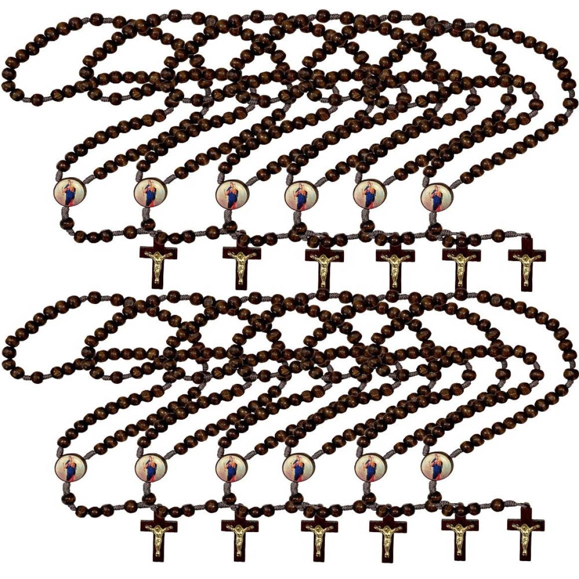 TE940120P12 - Terço N. Sra. Auxiliadora Madeira c/ 12un. - 37cm