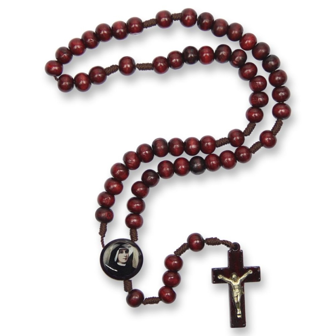 TE940251P12 - Terço Santa Faustina Madeira c/ 12un. - 37cm