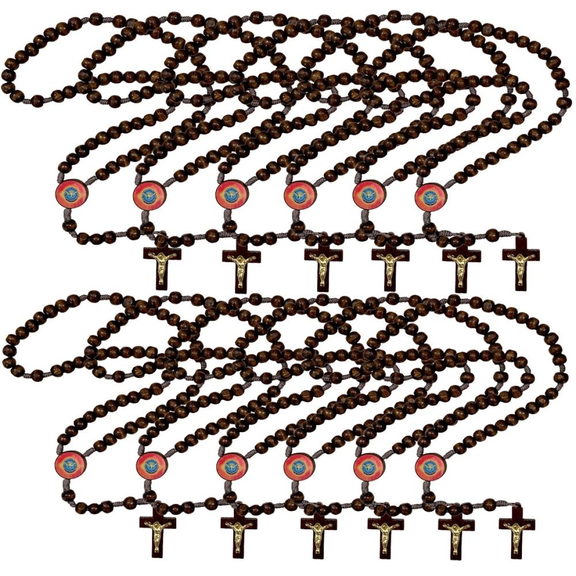 *Terço Divino Espírito Santo Madeira c/ 12un. - 37cm.
