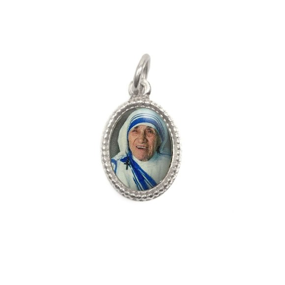 MD102442P20 - Medalha de Alumínio Oval Prata c/ 20un. Madre Tereza de Calcutá - 1,5x1cm