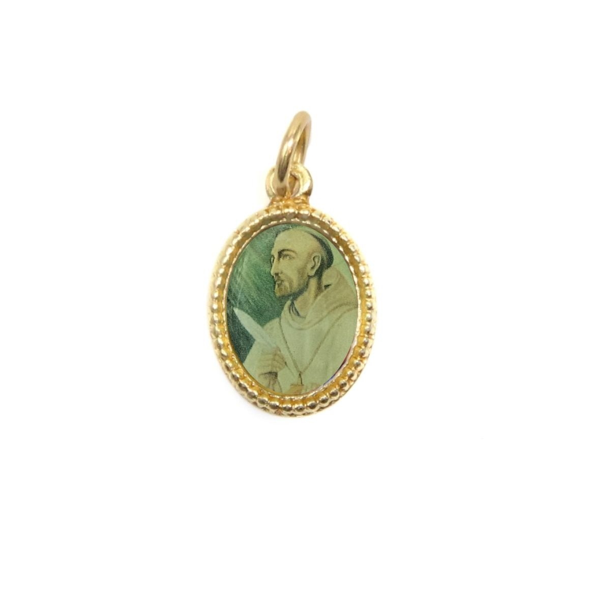 MD102268P20 - Medalha de Alumínio Oval Pequena Dourada c/ 20un. São Bernardo - 1,5x1cm
