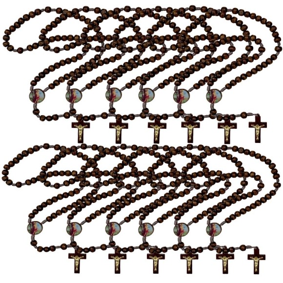 *Terço São Sebastião Madeira c/ 12un. - 37cm.