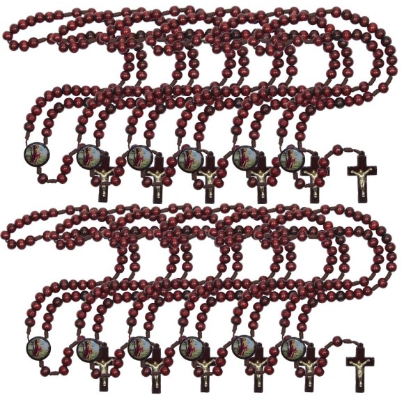 *Terço São Sebastião Madeira c/ 12un. - 37cm.