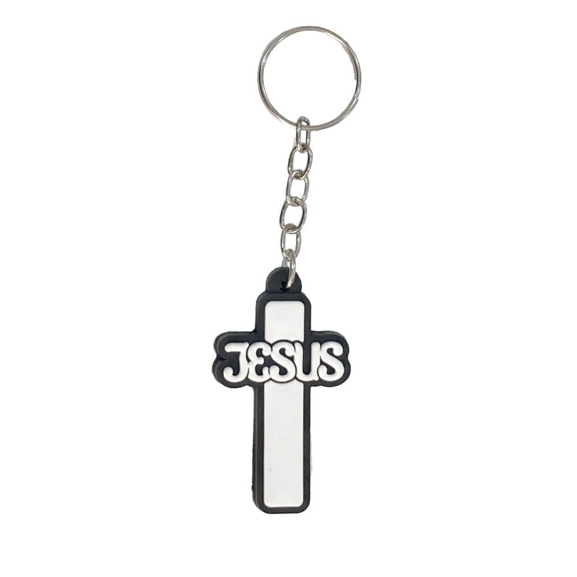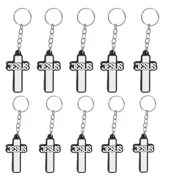 *Chaveiro Crucifixo Emborrachado c/ 10un. - 10,5x3,5cm.