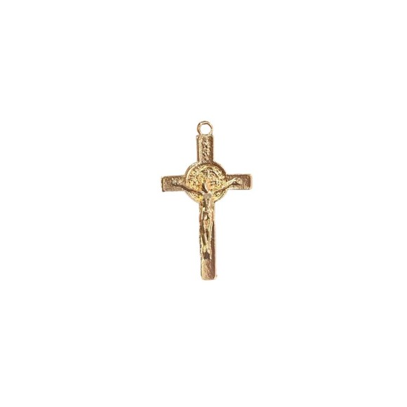 CZ891313P2 - Cruz São Bento Metal Dourado c/ 2un. - 3,6x2,5cm
