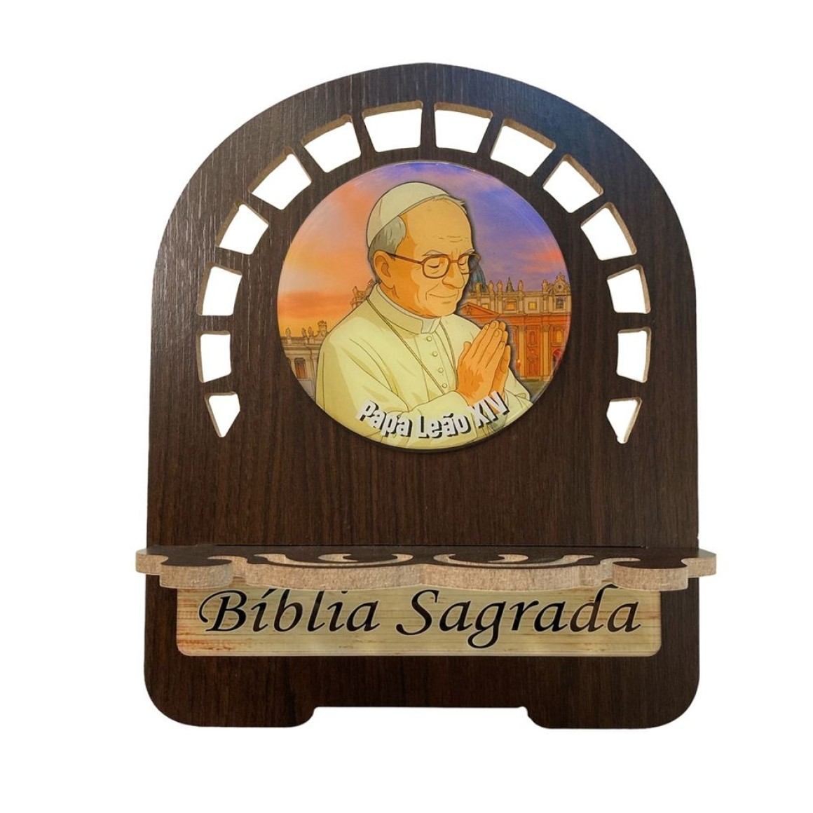 *Porta Bíblia Papa Leão XIV MDF Resinado - 26x21,5cm.