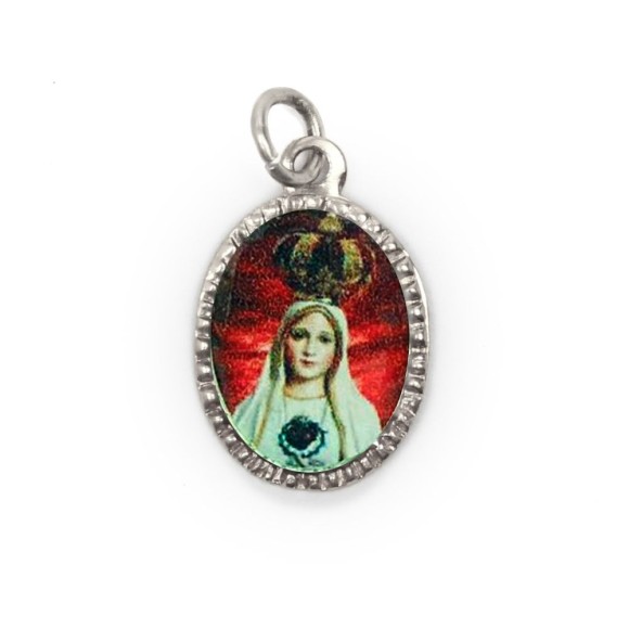 *Medalha de Alumínio Oval Prata c/ 10un. N. Sra. De Fátima - 2X1,3cm.