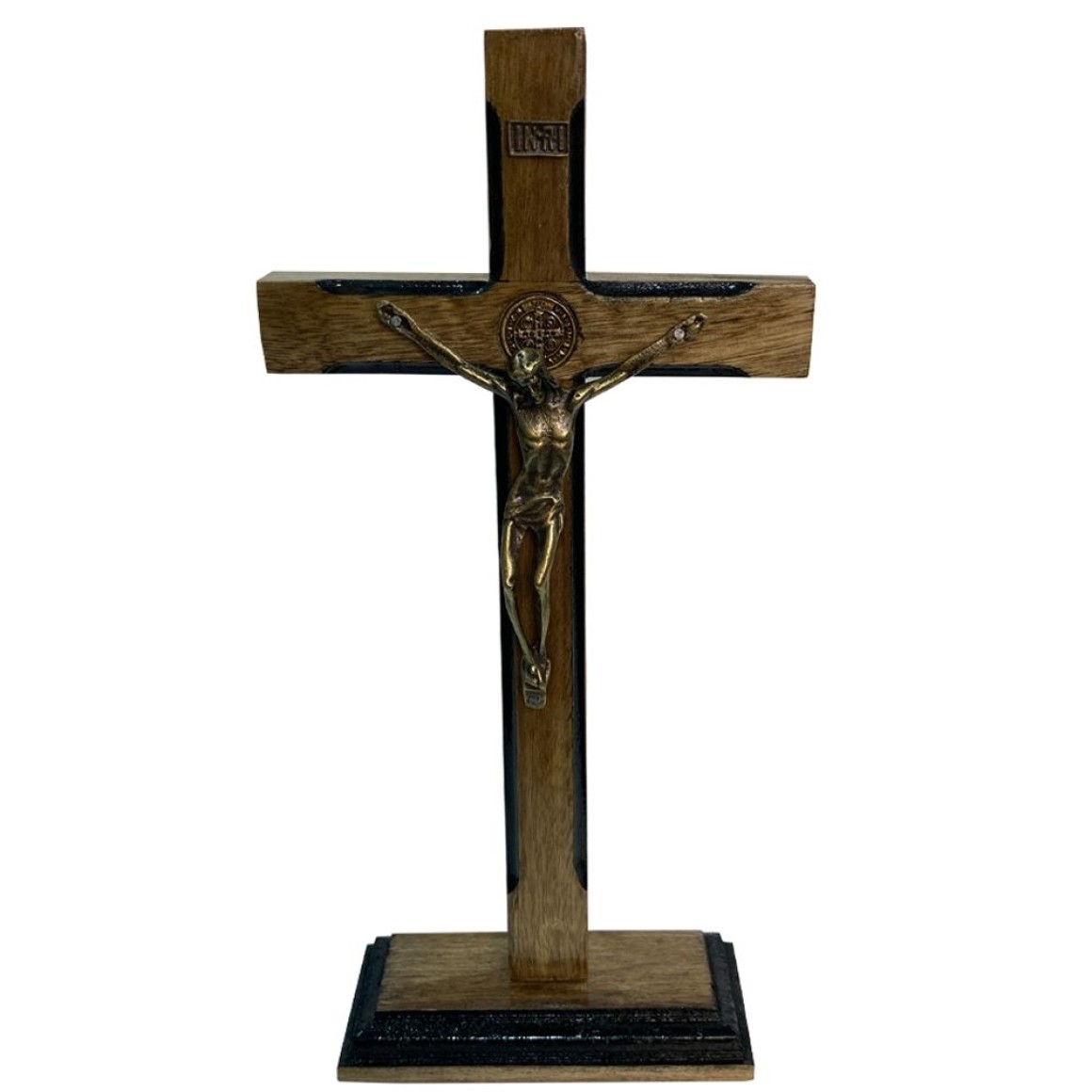 2. CU760078 - Crucifixo de Mesa São Bento Madeira - 33x17cm (3669)