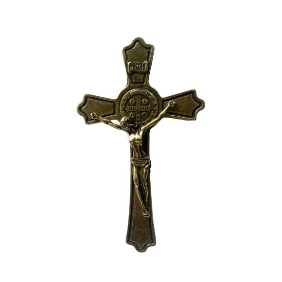 *Crucifixo Parede Metal São Bento Ouro Velho - 16x9,5cm.