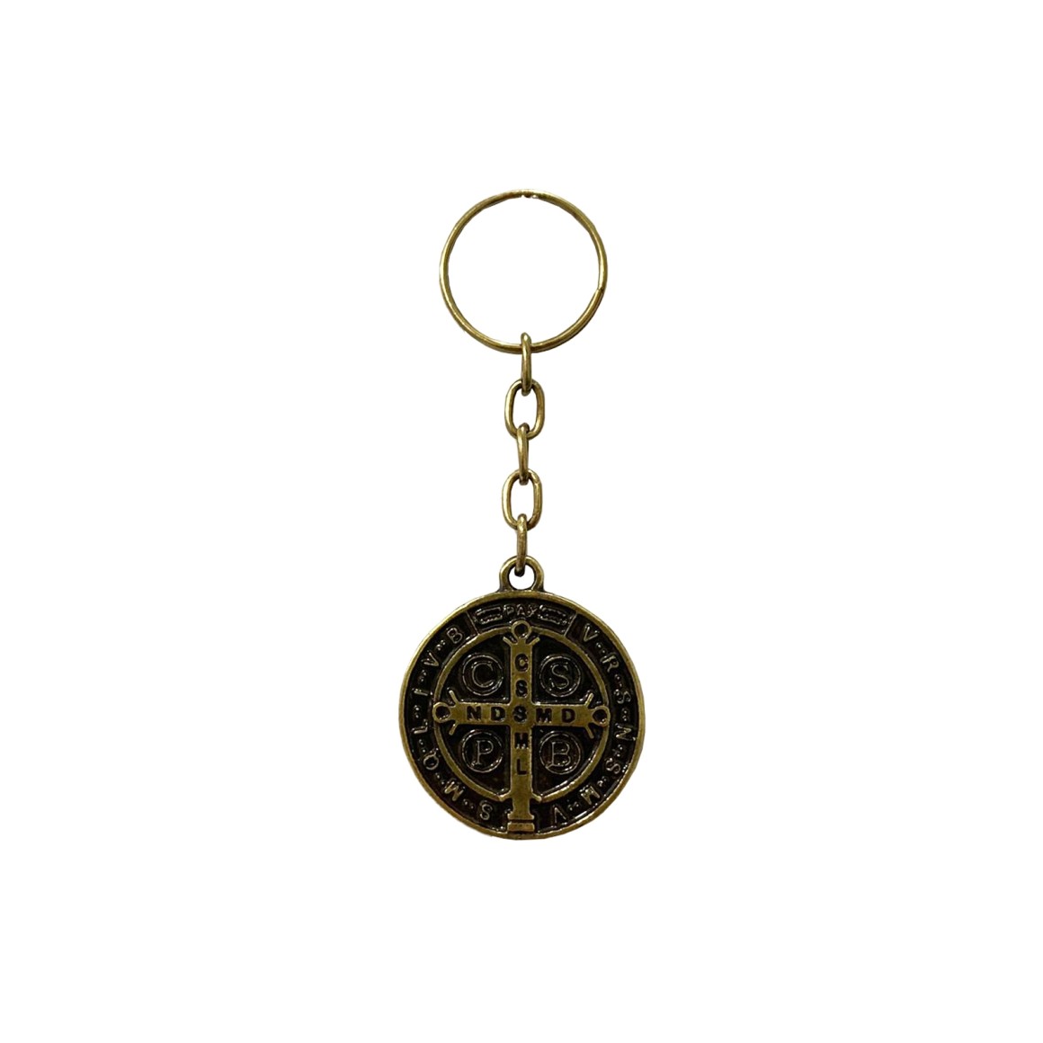 *Chaveiro São Bento Metal Ouro Velho - 9x3,3cm.