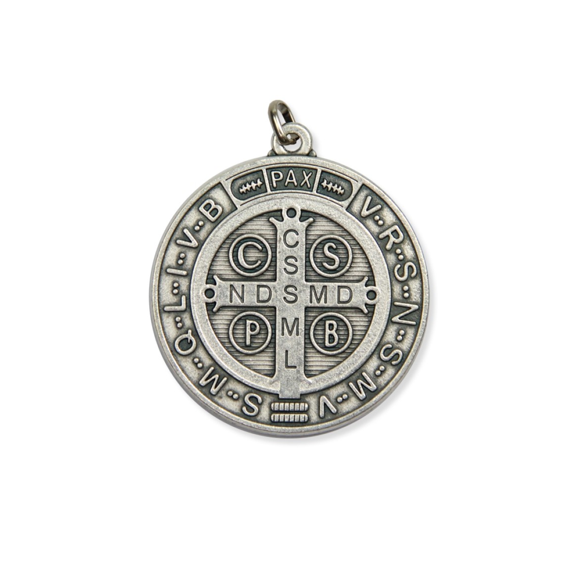 *Na frente da medalha são apresentados uma cruz e entre seus braços estão gravadas as letras C S P B, cujo significado é, do latim: Cruz Sancti Patris Benedicti – “Cruz do Santo Pai Bento”.