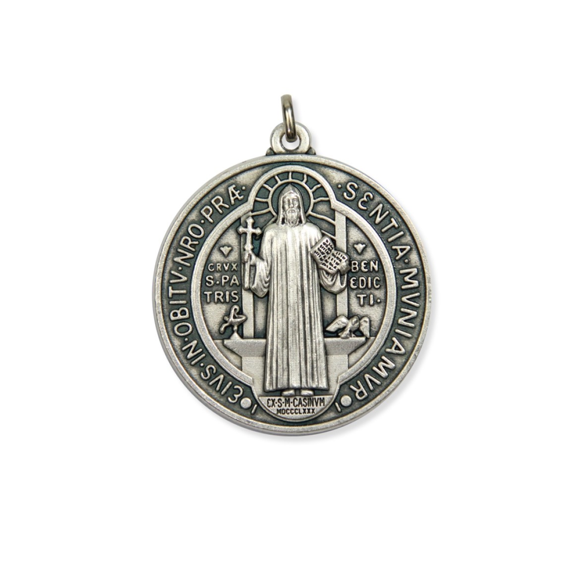 MD1190997 - Medalha São Bento Italiana Redonda Prateada - 6x5cm