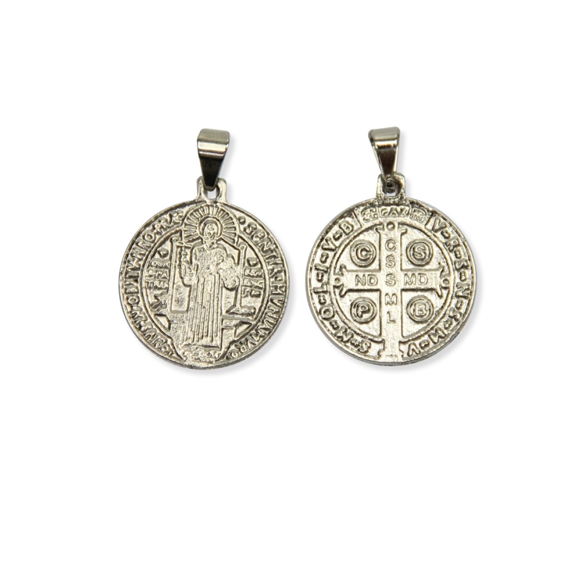 MD1420160P2 - Medalha São Bento Redonda Prateada c/ 2un. - 2,5x2,2cm