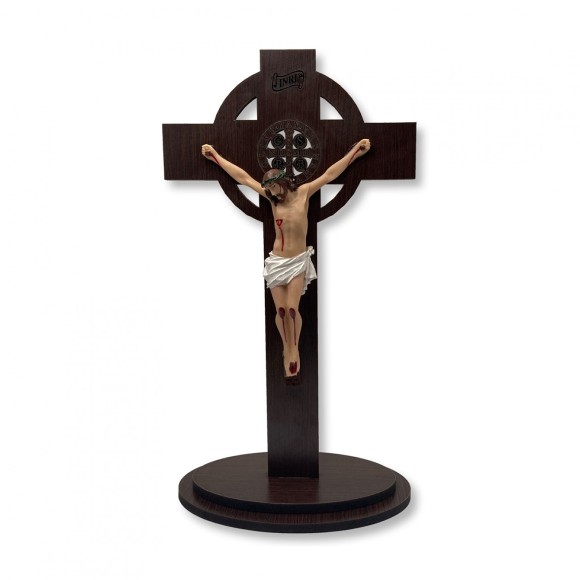 *Crucifixo de Mesa São Bento Madeira - 30x16cm.