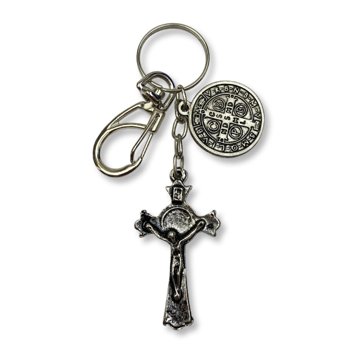 *Chaveiro São Bento Níquel Envelhecido - 12,5x2,5cm.