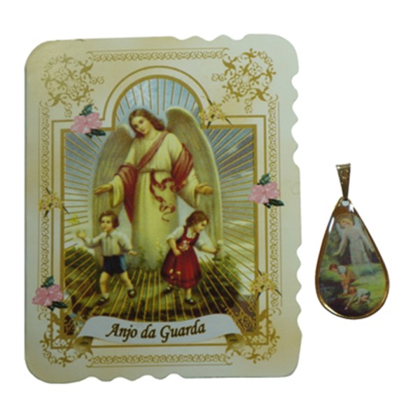 *Cartão Anjo da Guarda c/ Medalha - 7,5x6cm.