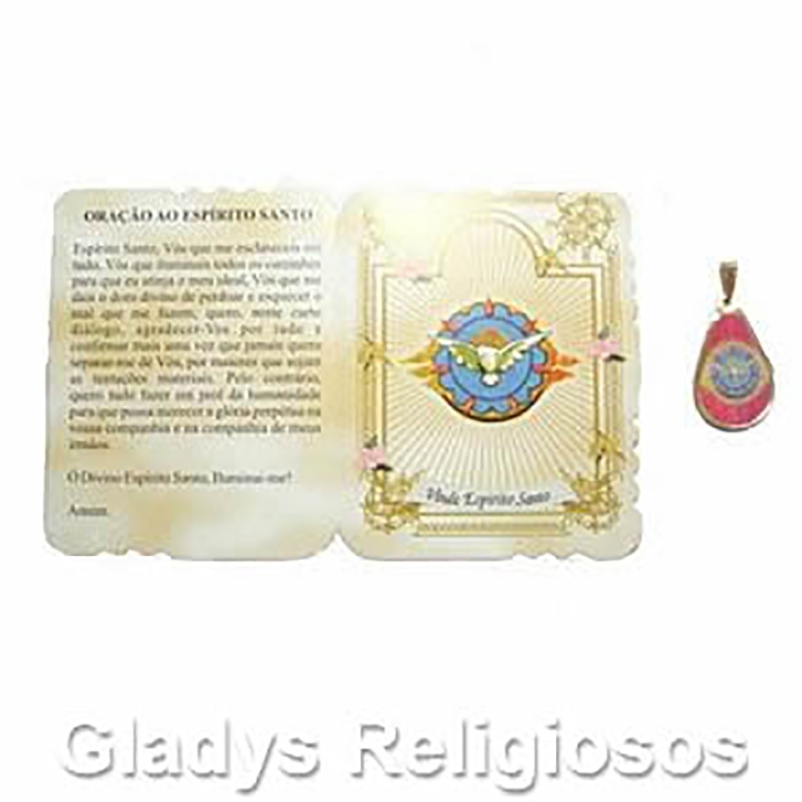 CM41801 - Cartão Divino Espírito Santo c/ Medalha - 7,5x6cm