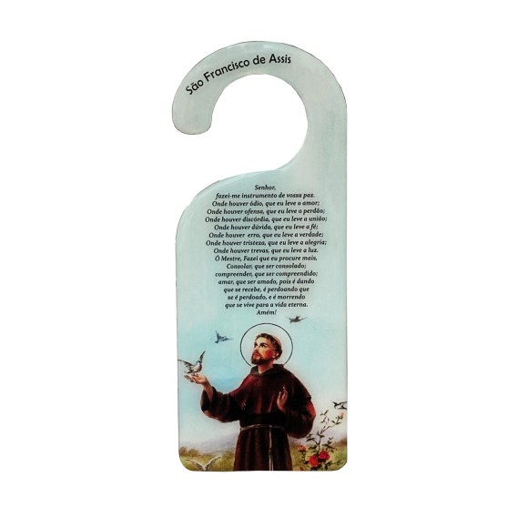 *Placa São Francisco de Assis para Maçaneta de Porta MDF - 18x7,3cm.