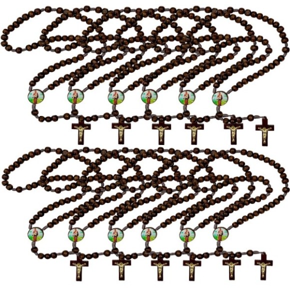 *Terço São Benedito Madeira c/ 12un. - 37cm.