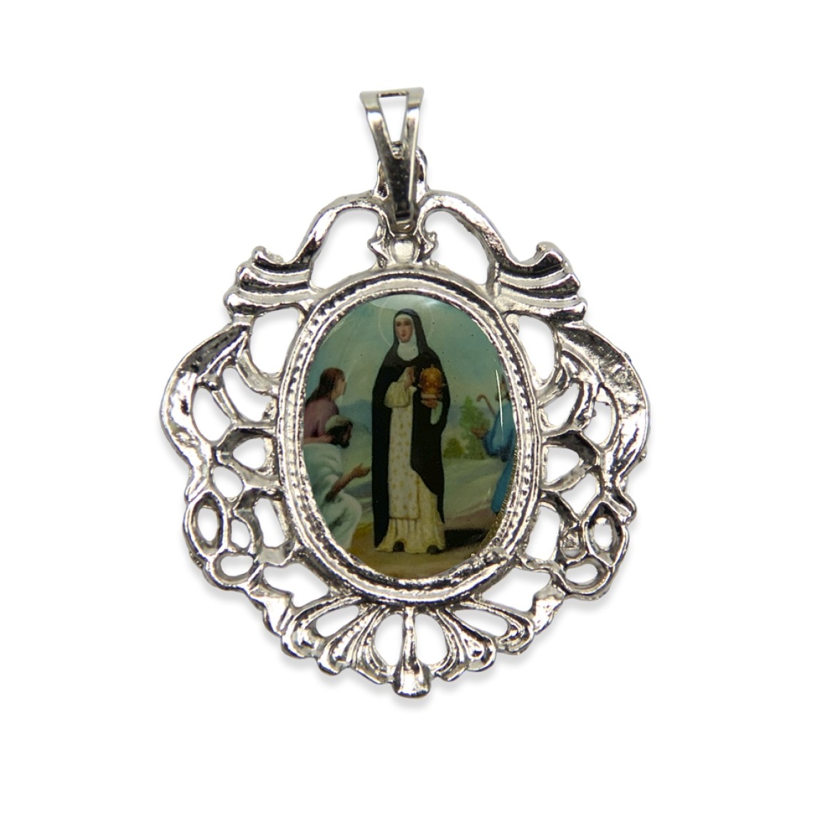 MD129090 - Medalha Santa Edwiges Camafeu Níquel - 5x4,2cm