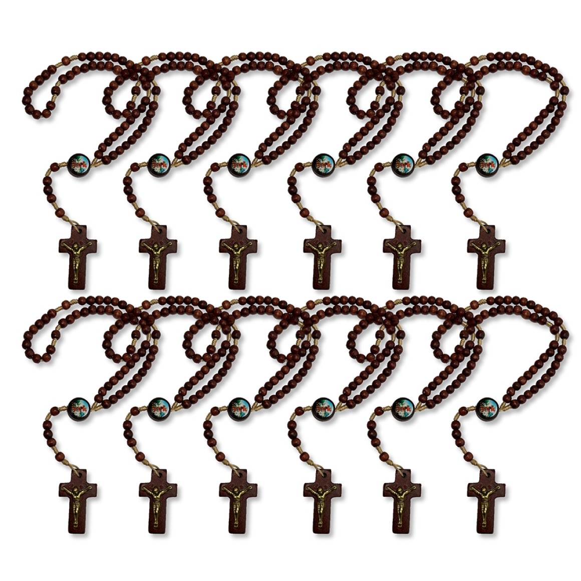 TE941400P12 - Terço São Jorge Madeira c/ 12un. - 24cm