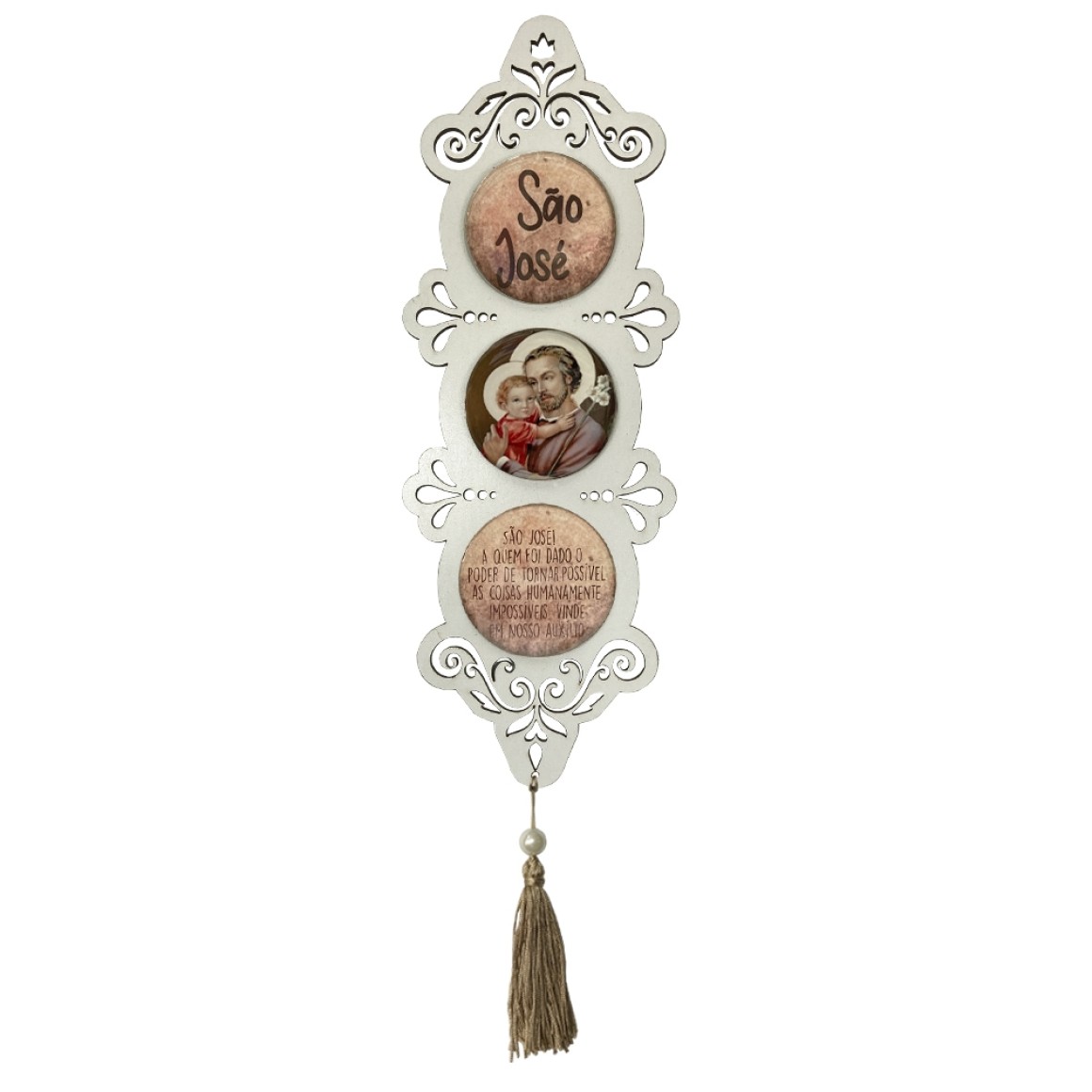 *Adorno São José MDF Branco Resinado - 40x10,5cm.