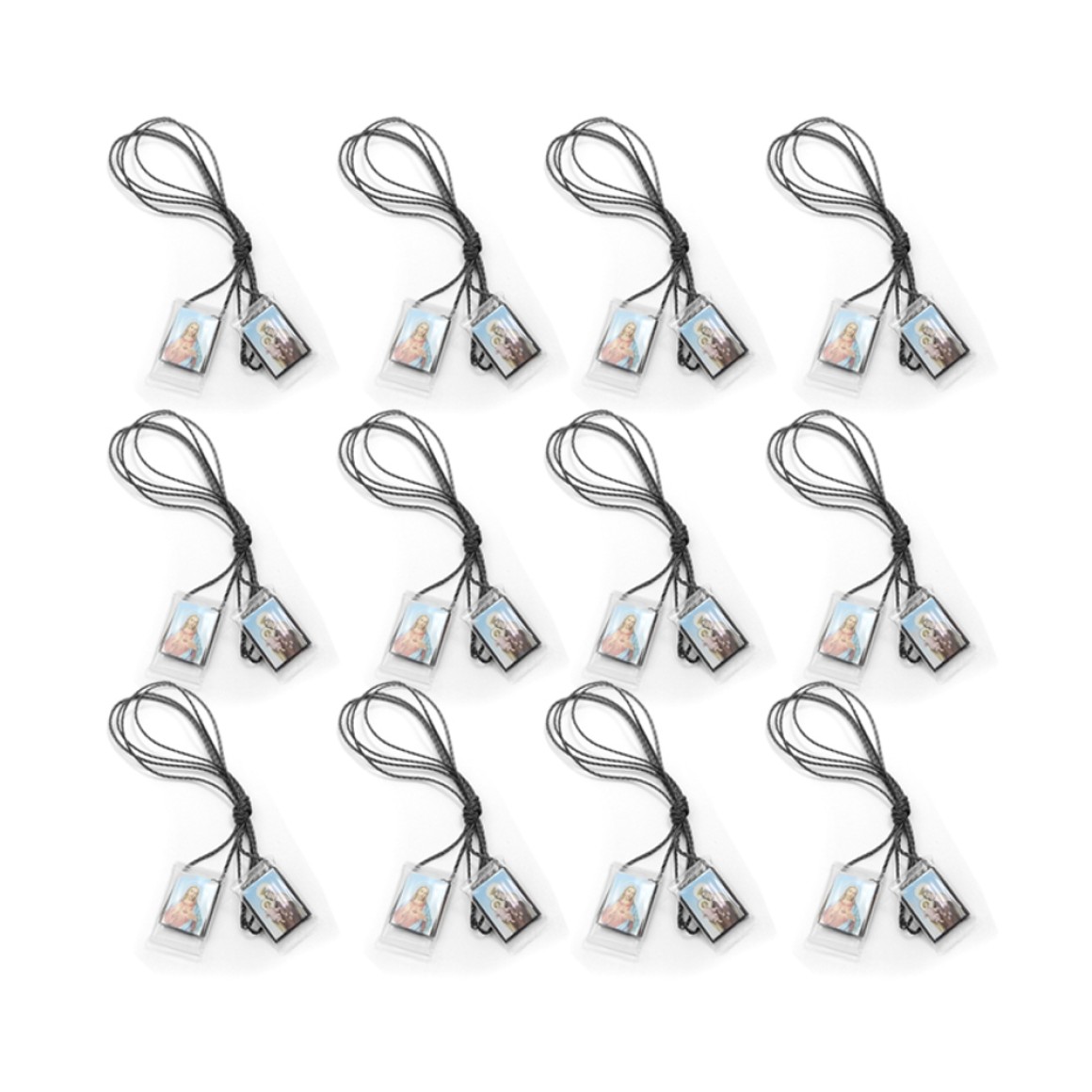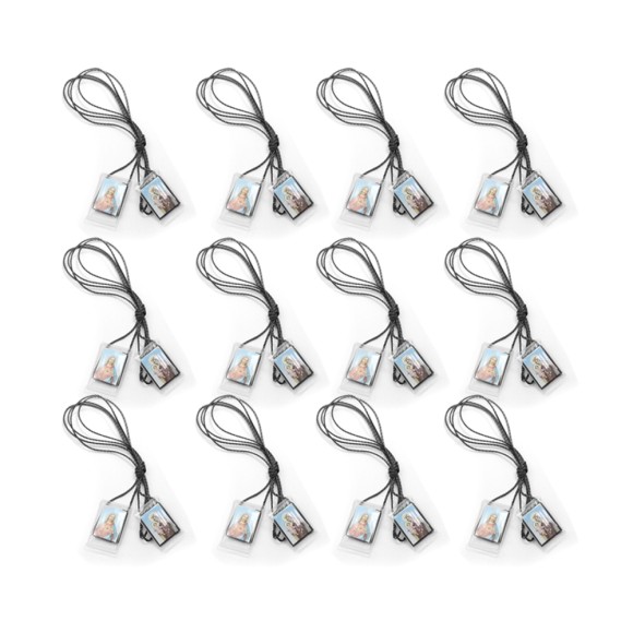 - ES149002P12 - Escapulário N. Sra. Do Carmo e Sagrado Coração de Jesus Plástico c/ Tecido 12un. - 66x1,3cm