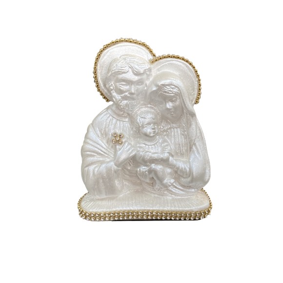 IM53009 - Imagem Sagrada Família Branca Perolada c/ Strass - 14x10cm