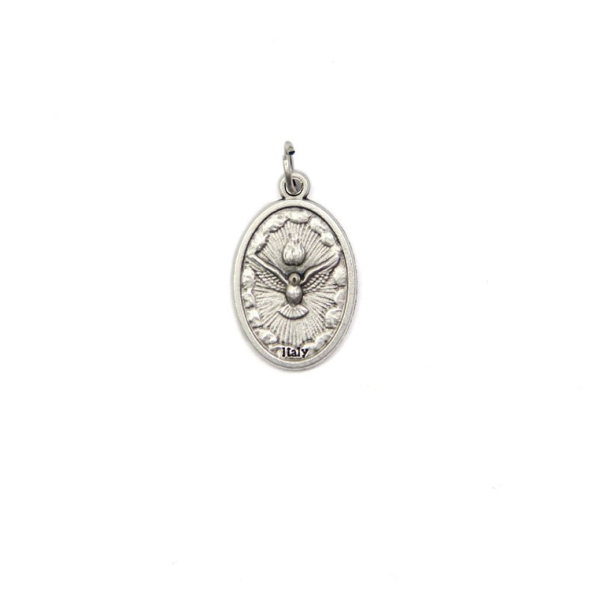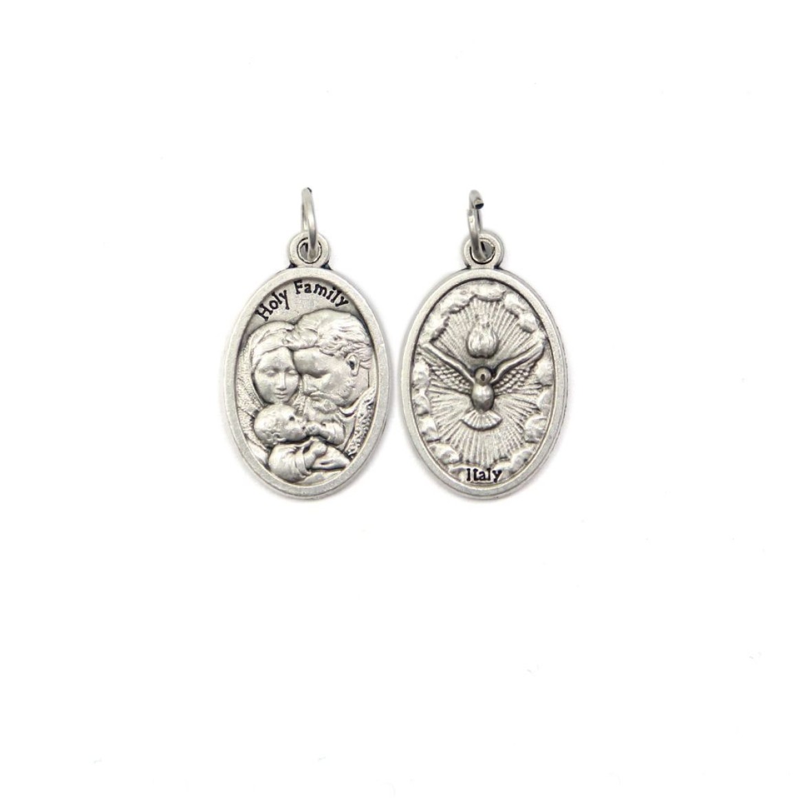 *Medalha Sagrada Família e Divino Espírito Santo Italiana Oval Dupla Média Prateada c/ 2un. - 2,5x1,7cm.