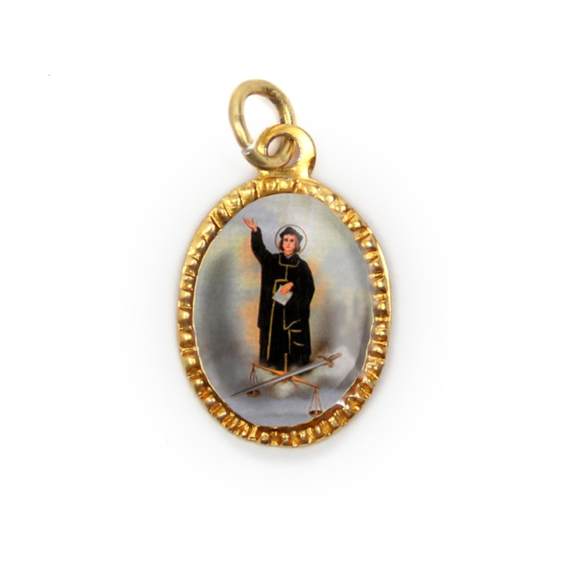 MD103228P10 - Medalha de Alumínio Oval Dourada c/ 10un. Santo Ivo - 2X1,3cm
